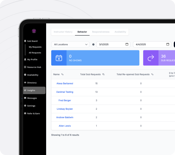 Send sub requests, invite the right instructors, lock in your subs fast.
