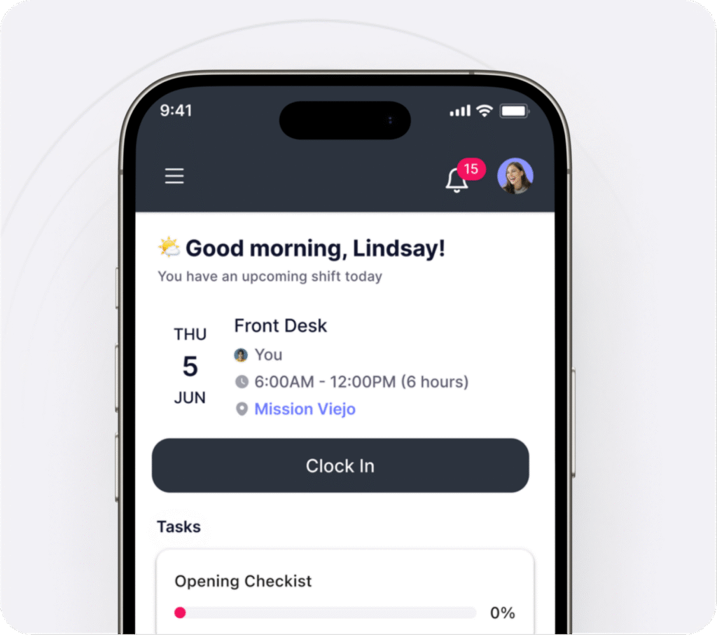 See who else is on your shift (front desk, managers, instructors) and who’s working nearby. Teamwork and communication become effortless.