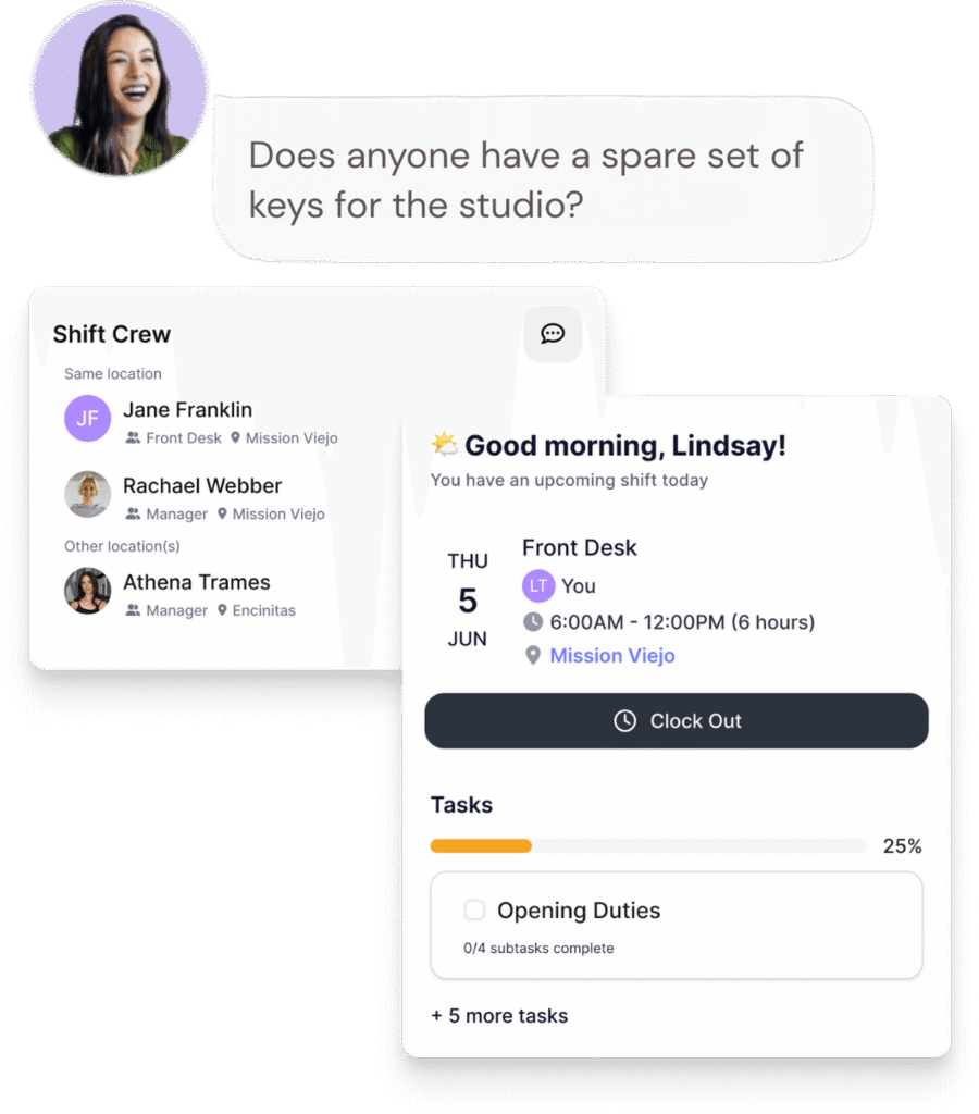 Create, assign, adjust, and guide shifts…all in one place. From front desk coverage to management and admin tasks, every shift comes with clear responsibilities, real-time visibility, and built-in reminders.